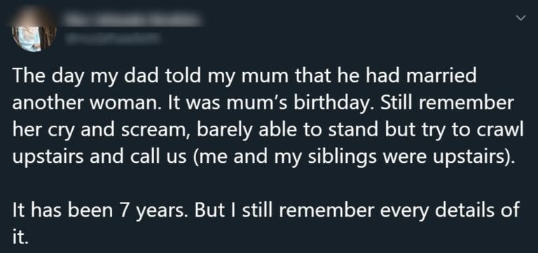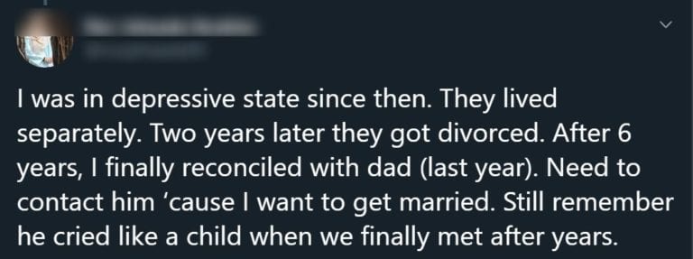 Mempunyai keluarga yang berpecah-belah sebenarnya bakal memberikan kesan mendalam khususnya kepada emosi anak-anak. Tatkala keluarga lain meneruskan hidup dengan kasih sayang sempurna, anak-anak pula terpaksa berhimpit dengan konflik perhubungan ibu ayah mereka sendiri. Keadaan tersebut mirip dengan sebuah kisah yang dibongkarkan oleh seorang wanita menerusi Twitternya sekali gus meraih ribuan jumlah retweet.